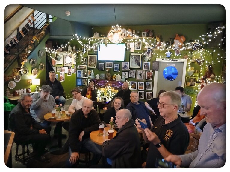 Branch members and other customers enjoying their beer after the presentation